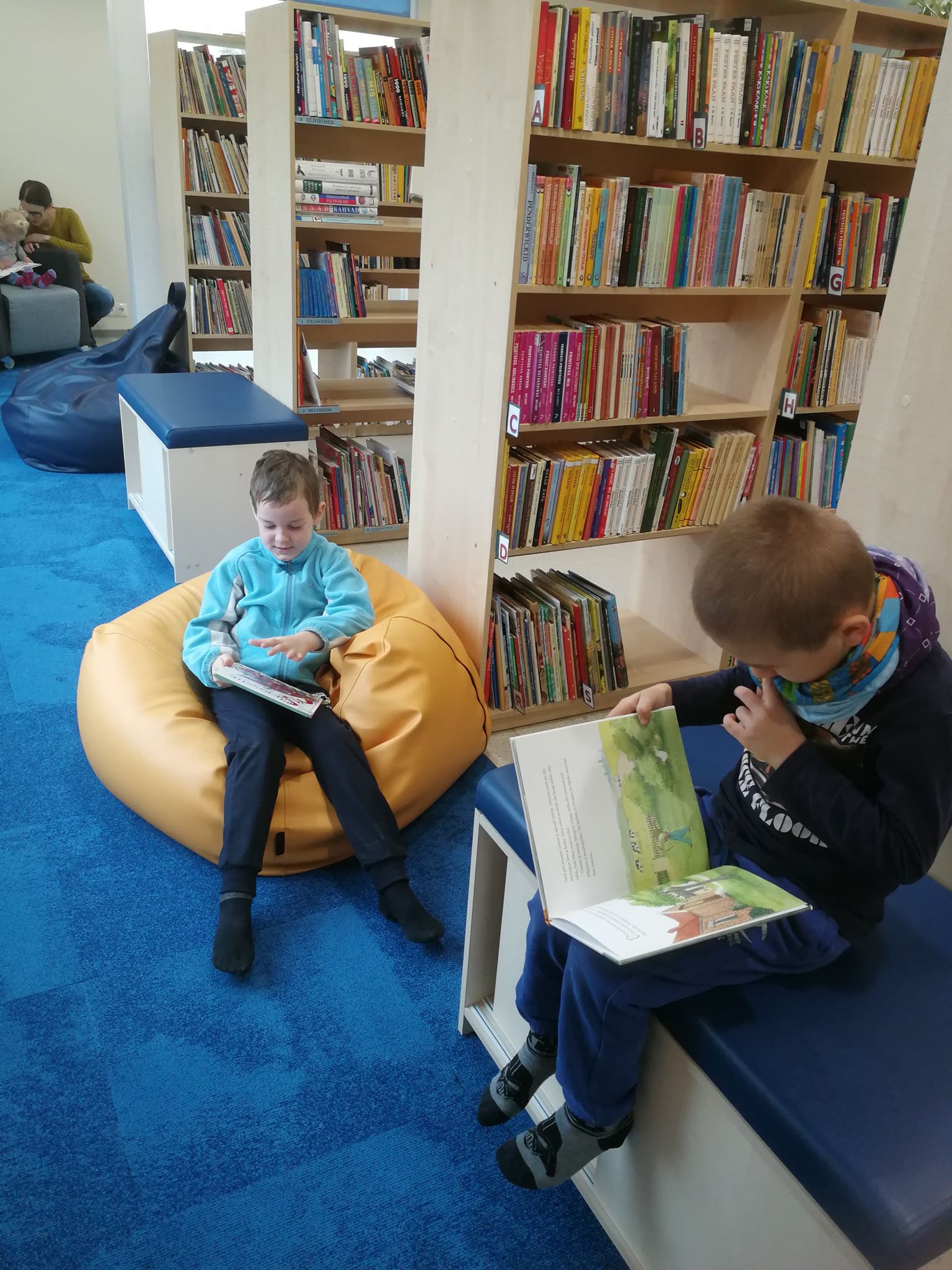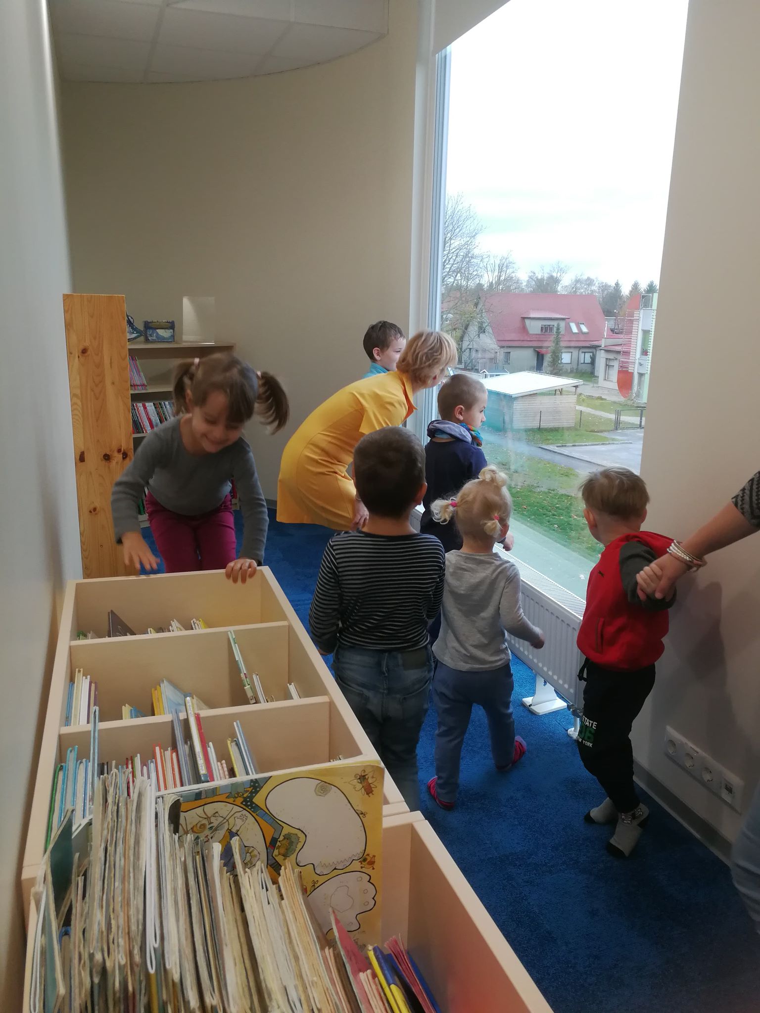 Käisime väljasõidul Raasiku Raamatukogus. Tore tädi Aire võttis meid ukselt soojalt vastu. Lastele ta tutvustas mis on raamatud, suured ja väiksed, paksud ja peenikesed, pildiga ja ilma.Lapsed olid väga vaimustatud. Pärast lugesime ja vaatasime ise raamatuid. Poisse paelus kosmos ja tehnika, tüdrukuid roosa nukud ja kassid/koerad. Vaatasime veel näitusi Hunt ja Papagoid. Aire ootab meid veel külla.