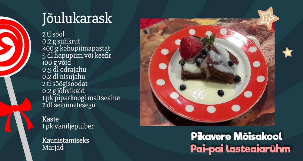 Pai-Pai rühm võttis osa Lastejaama poolt korraldatud jõulumaiuse retseptivõistlusest. Lastega sai proovitud ja arutatud mitmeid retsepte. Meie lemmikuks sai Jõulukarask, mis kõikidele lastele ka maitses. Eesti Rahvusringhäälingu elamussaadete toimetuse(Lastesaated) poolt tuli meile rõõmupakike, tänutäheks osavõtu eest.