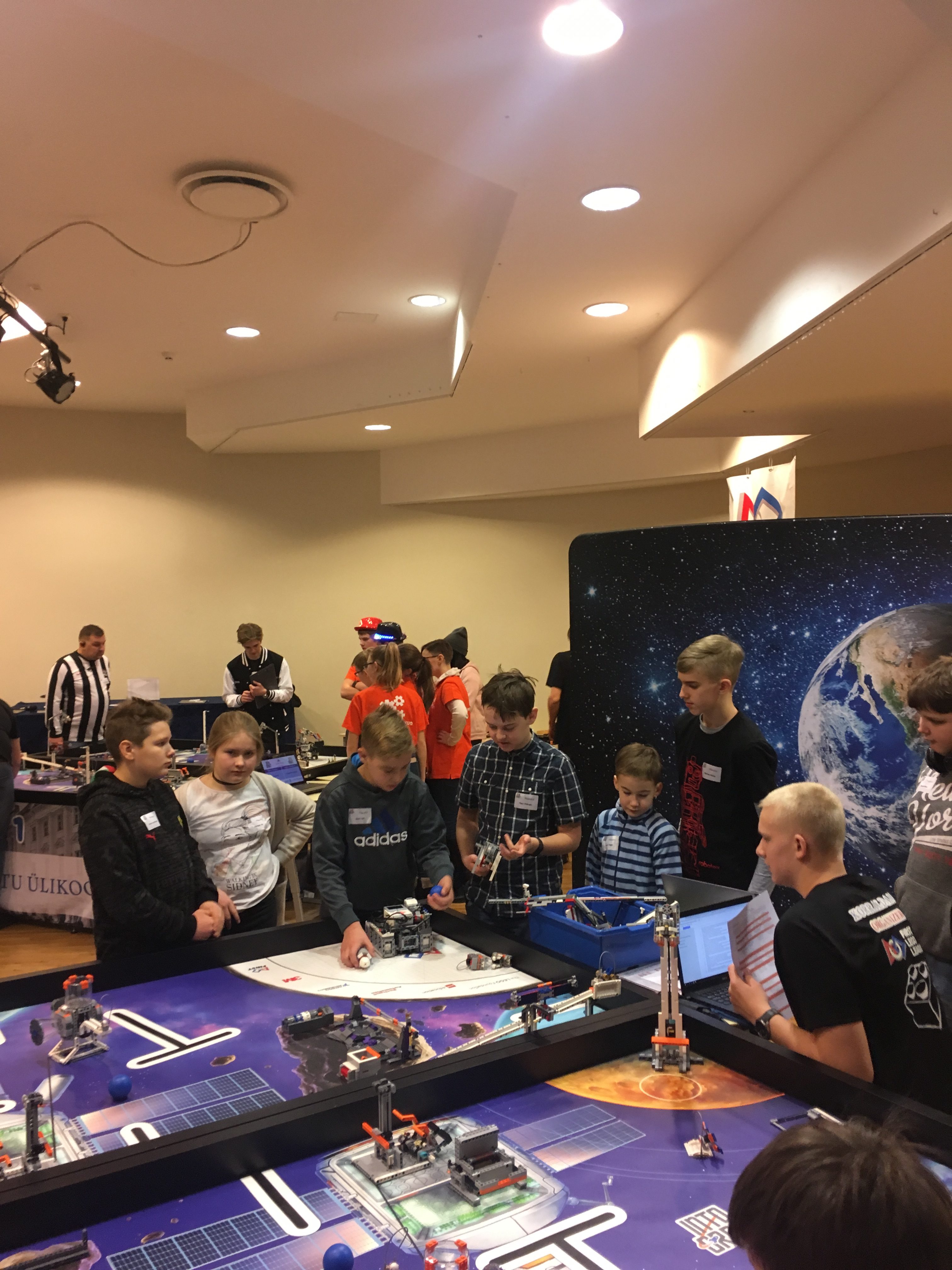 Pühapäeval, 27.01.19 toimus Laagri koolis võistluse FLL Põhja-Eesti II eelvoor, kus osalesid õpetaja Karri juhendamisel ka meie kooli robootikud Pjtor, Kenn, Christin, Jagnar, Enrcio, Mattias ja Artur. FLL võistlus näeb ette, et vastavalt teemale valitakse lisaks robotiga tegelemisele ka välja probleem, mida üheskoos meeskonnana lahendada püütakse. Selle aasta teemaks oli “Into orbit” ning meie meeskond valis lahendatavaks probleemiks kosmoses söömise. Meeskonna väitel ei saa kosmonaudid praegu veel päris kõike seal süüa, sest tekkiv toidupuru ohustab kosmoselaeva elektrisüsteeme. Selle lahenduseks pakkus meeskond kapslilaadse seadeldise ehitust, mis tõmbaks tolmuimeja eeskujul söömise jooksul toidupuru kohe ruumist välja. Projekti tuli võistlusel hindajatele esitada.