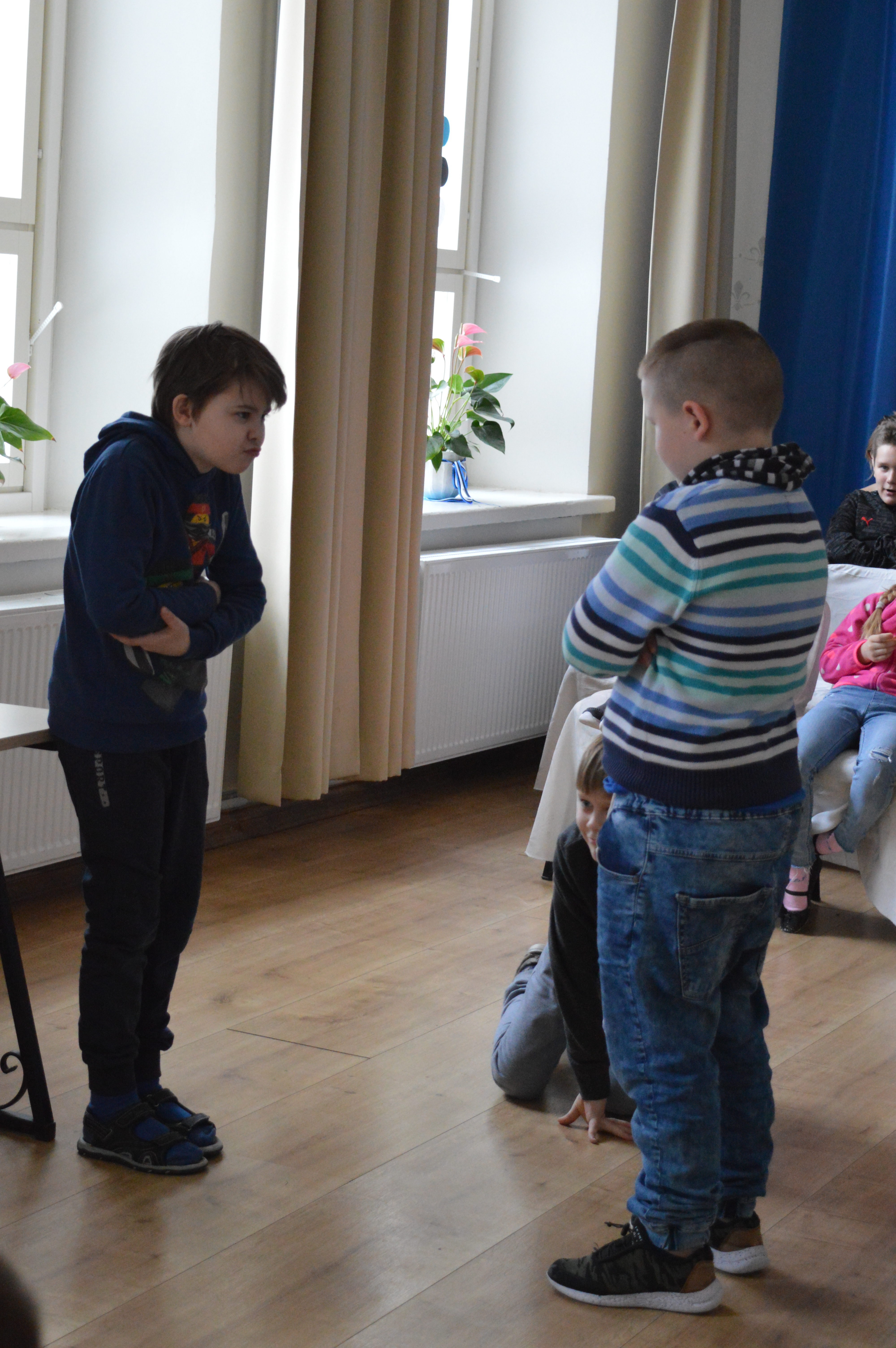 • Teisipäeval oli kõnekäändude päev. Lapsed jagati 3-liikmelistesse gruppidesse ning igal neist oli ülesanne üks kõnekäänd pantomiimina teisteni tuua. Pealtvaatajate ülesanne oli ära arvata, millise kõnekäänuga tegemist on. Kõik said väga hästi hakkama ning täiskasvanute abiga suudeti ka kõnekäänud ära arvata. Eriline kiitus tublidele lasteaialastele, kes samuti kõnekäänu pantomiimist osa võtsid.